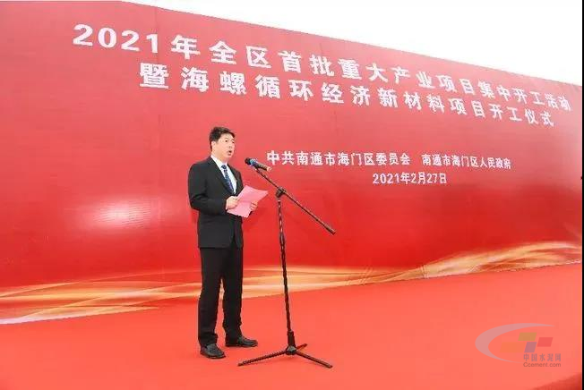 2月27日上午,江蘇省南通市海門區(qū)委、區(qū)政府在海門港新區(qū)海螺新材料項目現(xiàn)場舉行2021年全區(qū)首批重大產(chǎn)業(yè)項目集中開工活動,動員全區(qū)上下堅定必勝信心,激發(fā)昂揚斗志,大干快干、埋頭苦干、真抓實干,努力開創(chuàng)施工項目熱火朝天、竣工項目接二連三、儲備項目源源不斷的生動局面,為勇當(dāng)“兩爭一前列”領(lǐng)跑者提供強勁支撐。