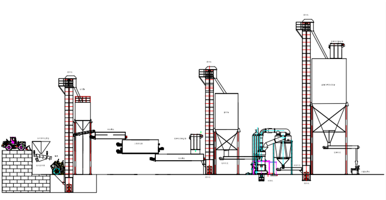 振動給料--》錘式破碎機破碎(脈沖除塵器)--》提升機--》原料罐--》給料皮帶--》預消化系統(tǒng)--》消化系統(tǒng)--》均化系統(tǒng)--》提升機--》圓筒篩(排渣)--...