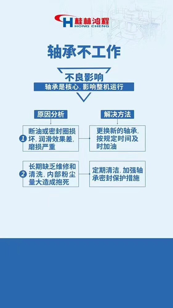 1.風(fēng)機(jī)振動過大 2.石灰磨粉機(jī)不出粉或者出粉少 3.傳動裝置和風(fēng)機(jī)油條發(fā)熱 4.石灰磨粉機(jī)主機(jī)振動或者噪音過大 5.石灰磨粉機(jī)軸承不工作 6.石灰磨粉機(jī)主機(jī)電流過大,機(jī)溫上升。